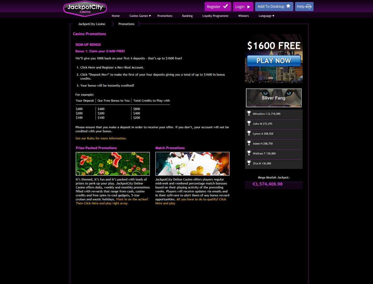 New Jackpot City players can enjoy a bonus up to $1,600 on their first four deposits. The bonus is instant, so you don’t need bonus codes. You might not be getting a Rainbow Riches slots no deposit, but at least you can get a good start for your betting journey.